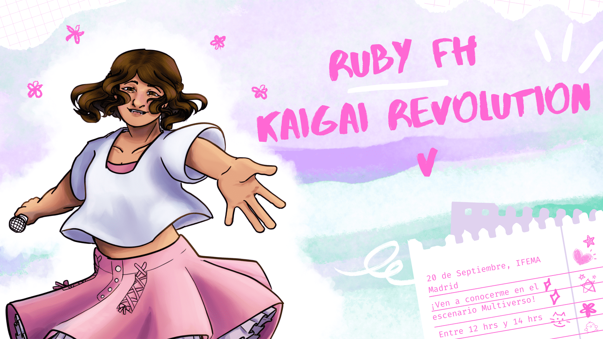 Ruby ha decidido dejar su hogar para poder viajar por el mundo para motivar a todos a participar en lo que sueñan. Viene desde Chile y su primera parada es aquí en España. Lleva 1 año y medio ensayando en grupo, pero esta es su primera vez sola. ¡Poned el lightsick rosado con luz blanca!